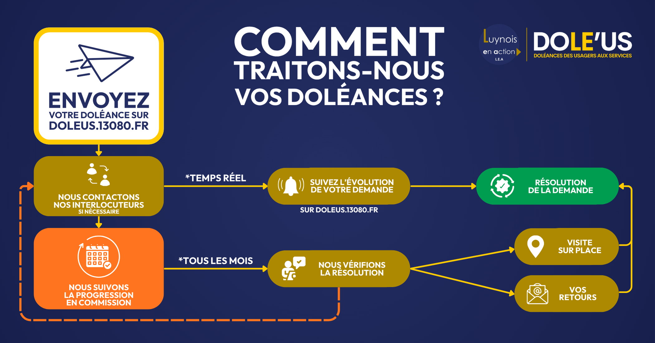 Grâce à DOLÉ’US de Luynois en Action, signalez des défauts du quotidien dans notre Village de Luynes (Aix-en-Provence), et suivez facilement leur résolution avec notre dispositif gratuit ! Notre équipe les transmettra aux services compétents.